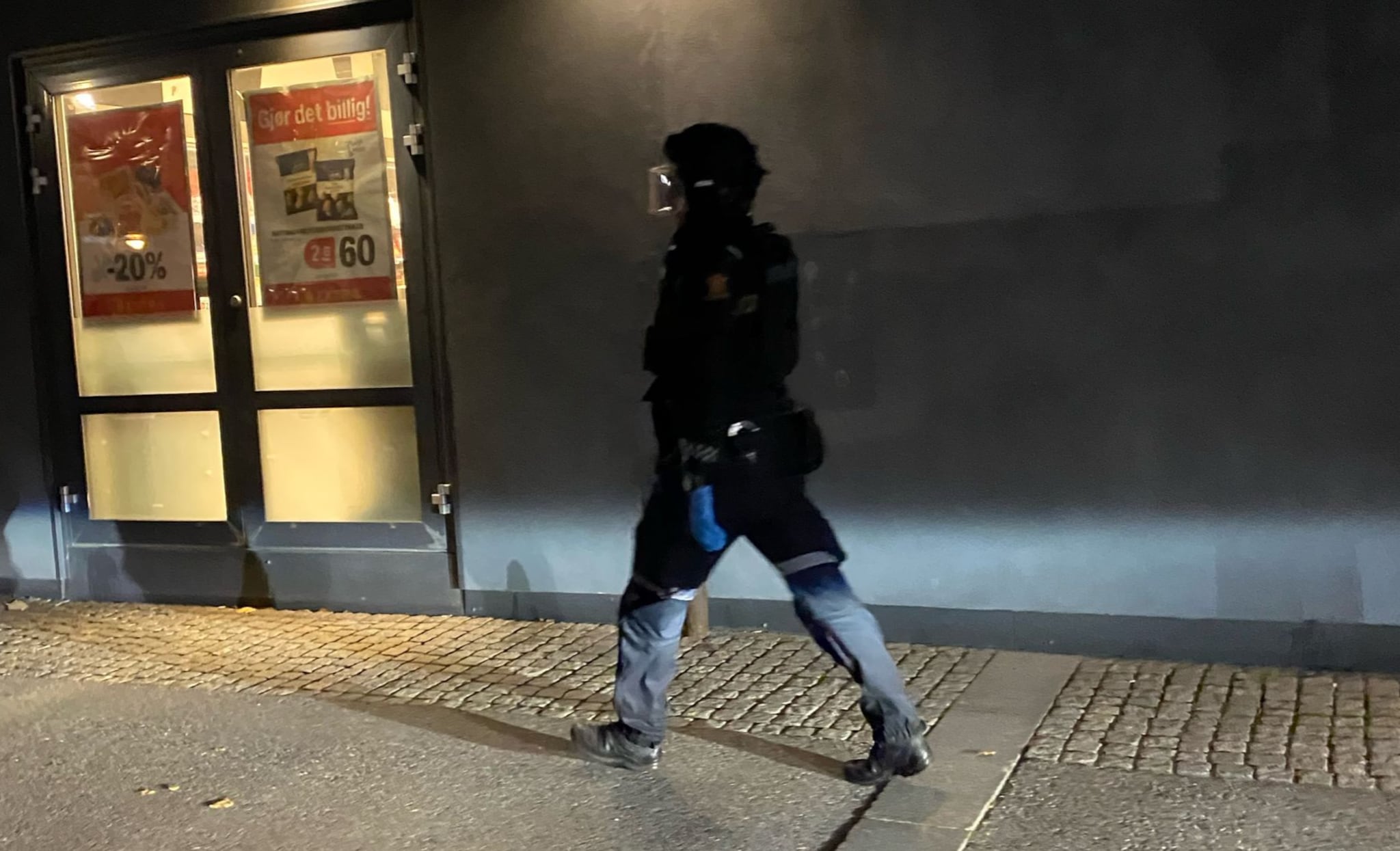 Politiet får varsel om hendelse i en Coop-butikk på Kongsberg. Klokken 1813 fikk politiet meldinger fra personer om at en mann beveget seg rundt i Kongsberg sentrum med våpen.